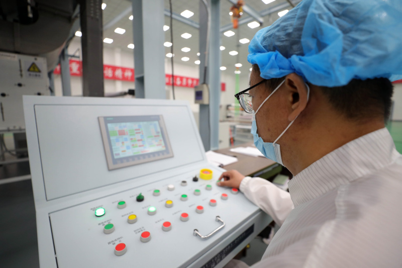 4月20日,工人在中國石油遼陽石化公司聚酯廠熔噴無紡布車間生產(chǎn)線上忙碌。新華社記者 楊青 攝