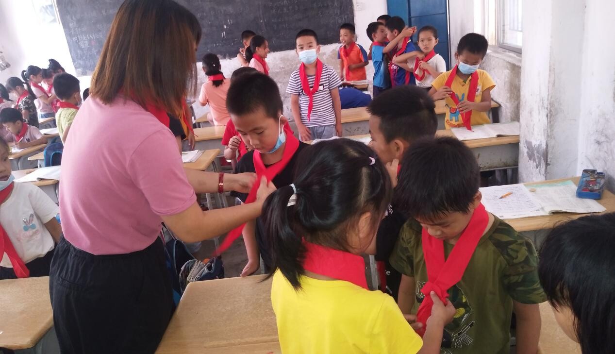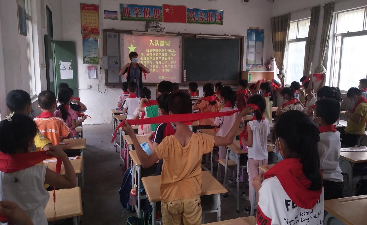 為深入學習宣傳貫徹習近平總書記致中國少年先鋒隊建隊70周年賀信精神,培養(yǎng)少先隊員對黨和習近平總書記的真摯情感,引導廣大少先隊員從中國抗疫實踐、決勝全面小康和決戰(zhàn)脫貧攻堅的奮斗故事中培養(yǎng)制度自信,激勵少先隊員沿著黨、團、隊傳承紅色基因鏈條不斷成長進步,為第八次全國少代會召開營造良好氛圍。按照全國少工委關于在“六一”期間開展以“迎接少代會,爭做好隊員”為主題的活動要求,2020年5月28日下午,在疫情的影響下,遂溪縣城月鎮(zhèn)中心小學以班級為單位,舉行了新隊員入隊儀式。