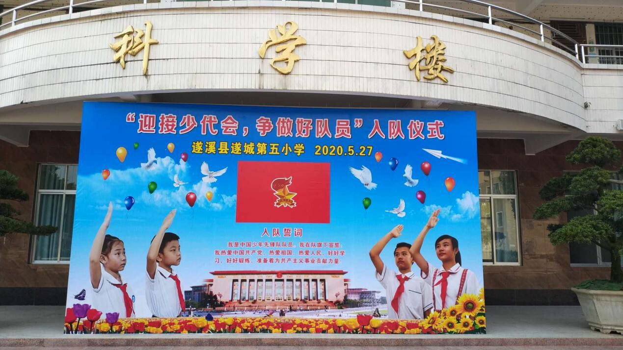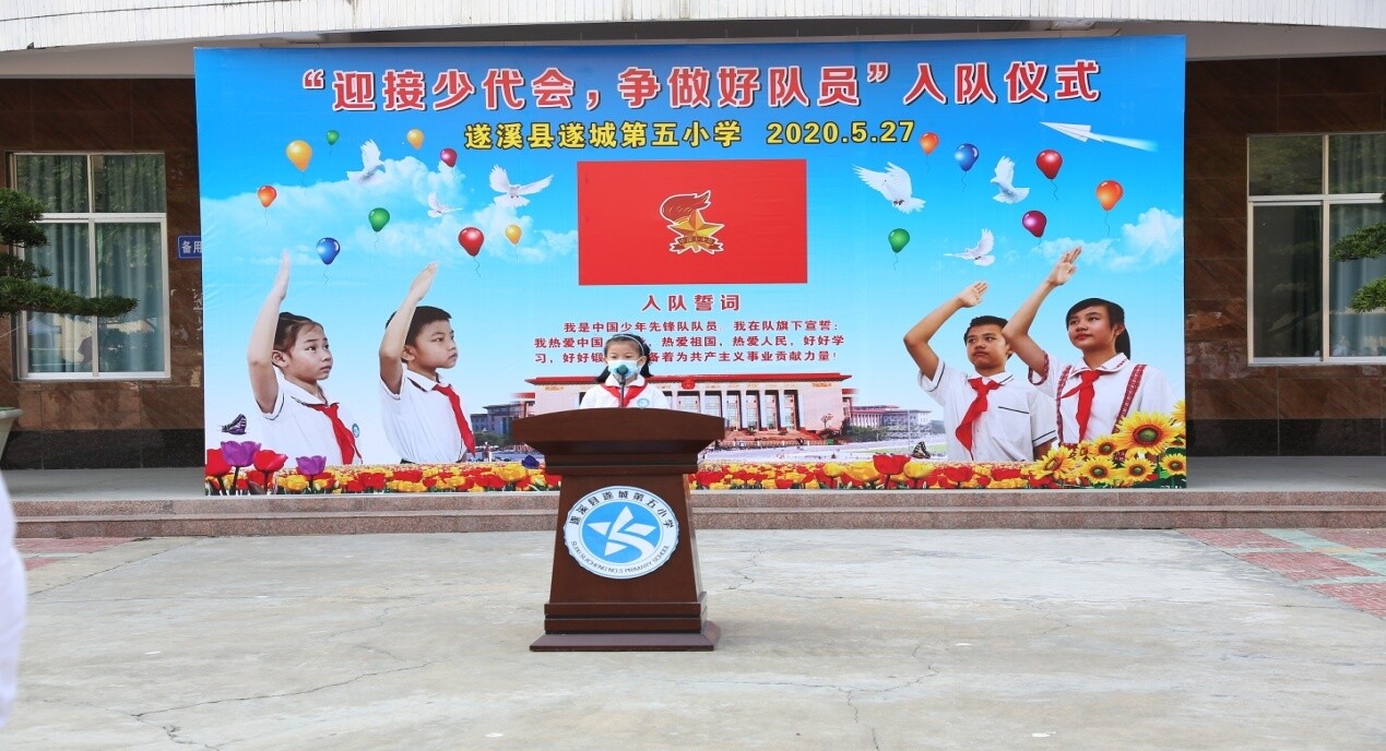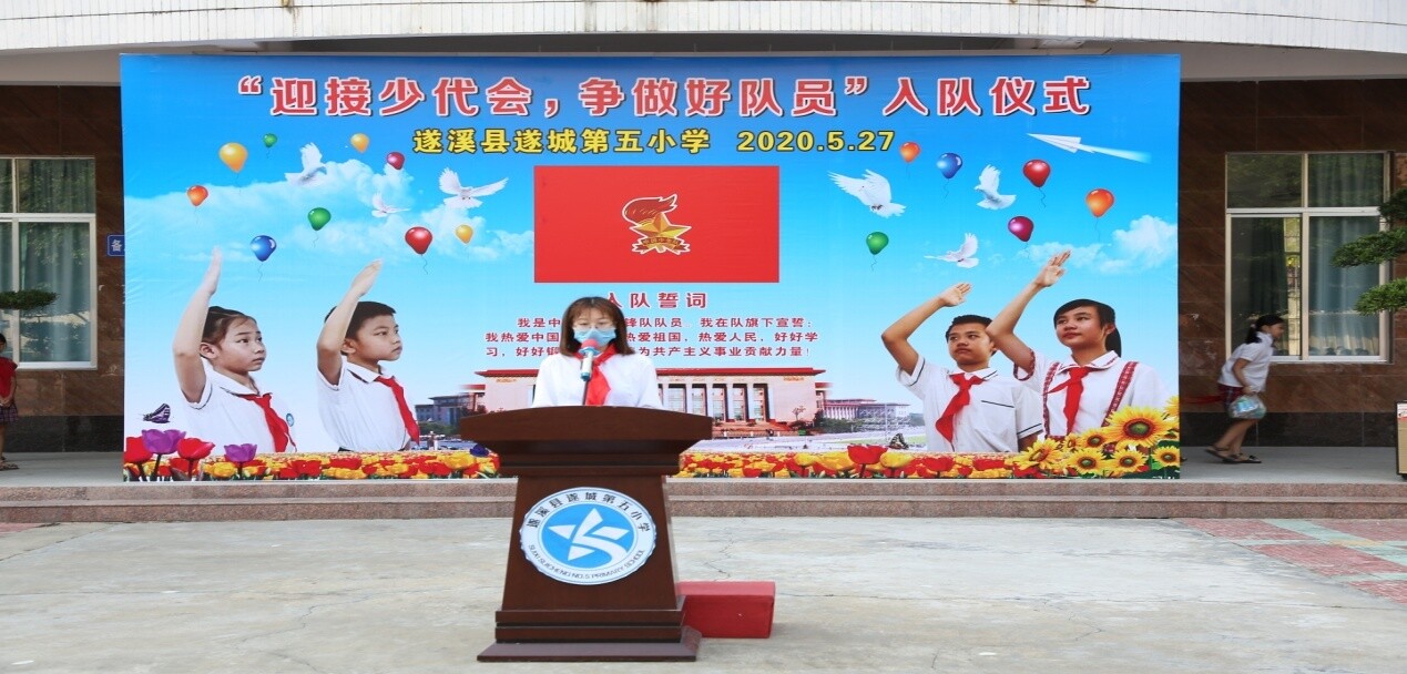 5月27日早上,為了迎接中國少年先鋒隊(duì)第八屆全國代表大會(huì)暨慶?!傲粐H兒童節(jié)”,遂城鎮(zhèn)第五小學(xué)少先隊(duì)大隊(duì)部舉行了“迎接少代會(huì),爭做好隊(duì)員”入隊(duì)儀式。