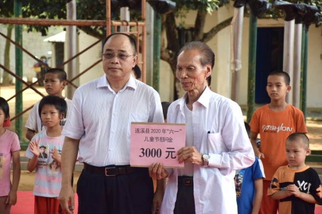 縣文化藝術(shù)學(xué)校校長(zhǎng)盧陳興介紹了學(xué)校和孩子們學(xué)習(xí)生活等情況,希望有更多的愛(ài)心人士關(guān)注、關(guān)愛(ài)孤兒和留守兒童,讓他們健康快樂(lè)成長(zhǎng)。