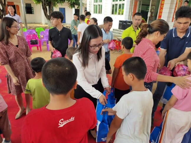 為孩子們頒發(fā)了六一兒童節(jié)禮物,孩子們露出了幸福的笑容,現(xiàn)場(chǎng)充滿了溫馨和歡樂(lè)。
