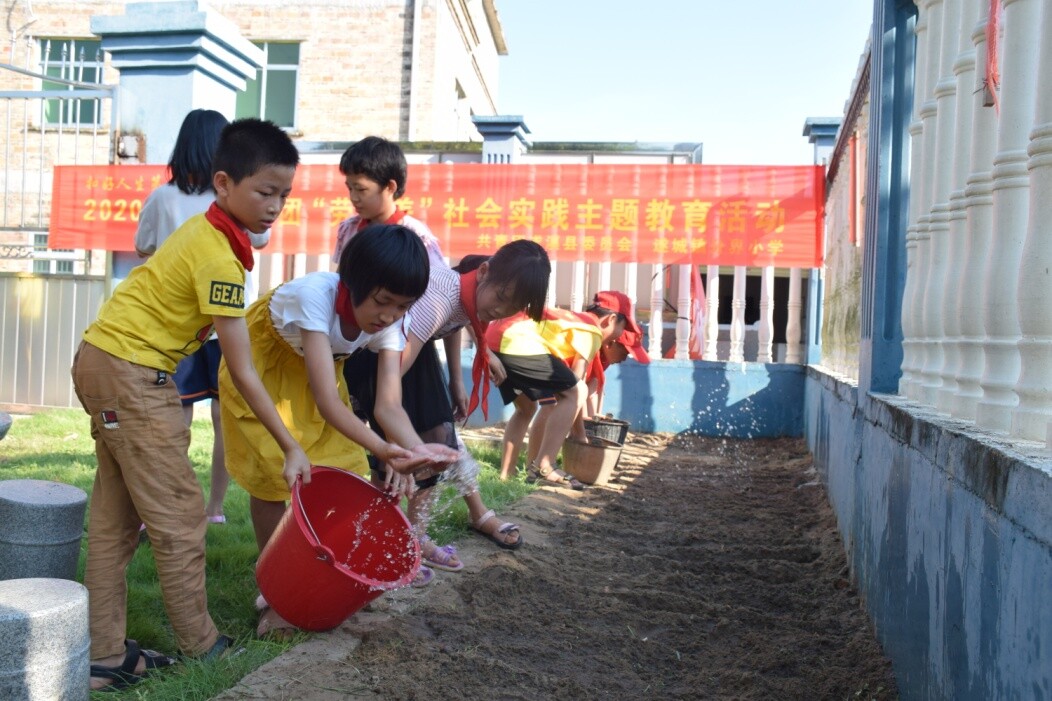 在本次社會實踐活動中,首先由志愿者們修剪了預先準備好的蔥苗。隨后,分界小學的孩子們在老師的帶領下來到了圍欄處,并踴躍地加入了種蔥的隊伍。在老師和志愿者們的有序指導下,同學們一邊學習有關(guān)種蔥方面的知識,一邊一起動起手來,用鋤頭鏟掉圍欄處的雜草,清理了圍欄內(nèi)的垃圾和雜物,保證了周邊的環(huán)境衛(wèi)生。最后,小朋友們在志愿者的指導下,開始分工合作,松土,抬水,種上蔥苗、灌溉等。與此同時,志愿者和老師們也時刻提醒小朋友們與同伴合作的重要性,并進行相應的安全教育?;顒蝇F(xiàn)場的歡聲、笑聲、討論聲不絕于耳,孩子們對此項活動樂此不疲。