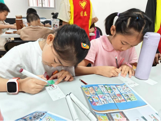 活動(dòng)中,志愿者老師圍繞“掃黃打非”“護(hù)苗行動(dòng)”“綠色閱讀”等要素,教孩子們手繪“綠書簽”。孩子們充分發(fā)揮想象力和創(chuàng)造力,結(jié)合自己的理解在空白的書簽上大膽構(gòu)思,用他們稚嫩的畫筆,認(rèn)真描繪出心中的綠書簽。結(jié)合“護(hù)苗·綠書簽”行動(dòng),引導(dǎo)孩子們閱讀正版書籍,積極為孩子們營(yíng)造書香氛圍,讓孩子們從小喜歡閱讀,抵制有害出版物,共同進(jìn)步,共同成長(zhǎng)。