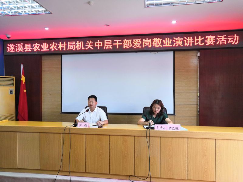 019年5月17日,我局在局機(jī)關(guān)六樓會(huì)議室召開(kāi)副股級(jí)以上干部會(huì)議,并開(kāi)展局機(jī)關(guān)中層干部愛(ài)崗敬業(yè)演講比賽活動(dòng)??h農(nóng)業(yè)農(nóng)村局黨組成員、縣委農(nóng)辦(縣扶貧辦)常務(wù)副主任陳連虹主持活動(dòng)。