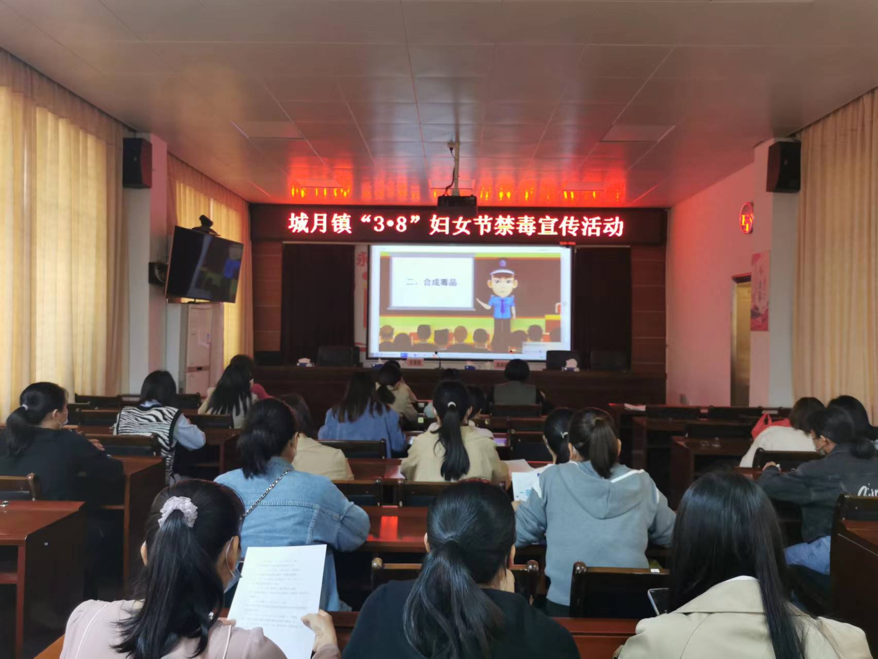 活動現(xiàn)場,活動主要由以PPT形式向城月鎮(zhèn)政府、站所、村兩委女性干部講解毒品的種類,講解毒品的嚴重危害性,讓婦女群眾了解禁毒相關知識,并鼓勵婦女們充分發(fā)揮半邊天的作用,積極參與全民禁毒斗爭工作。通過有獎問答和發(fā)放禁毒宣傳冊的方式,普及如何識別毒品原植物、毒品的種類以及毒品對個人、家庭、社會的危害。特別向婦女朋友宣傳孕婦吸毒對胎兒的影響、如何教育子女不沾染新型毒品、青少年“自衛(wèi)防毒”術等方面知識,并鼓勵大家充分發(fā)揮“半邊天”的作用,積極參與全民禁毒工作。