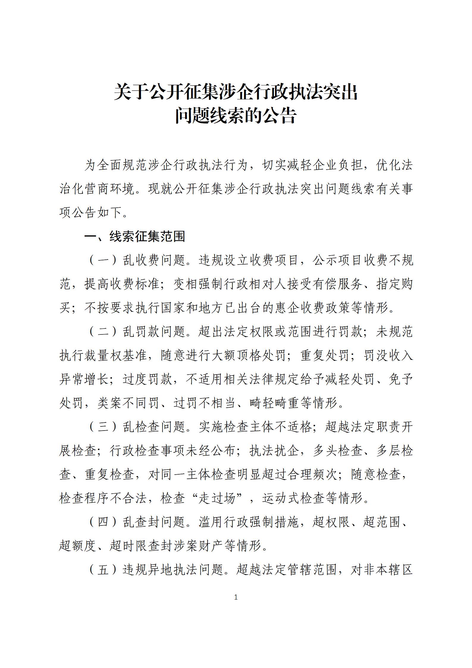 關(guān)于公開(kāi)征集涉企行政執(zhí)法突出問(wèn)題線索的公告