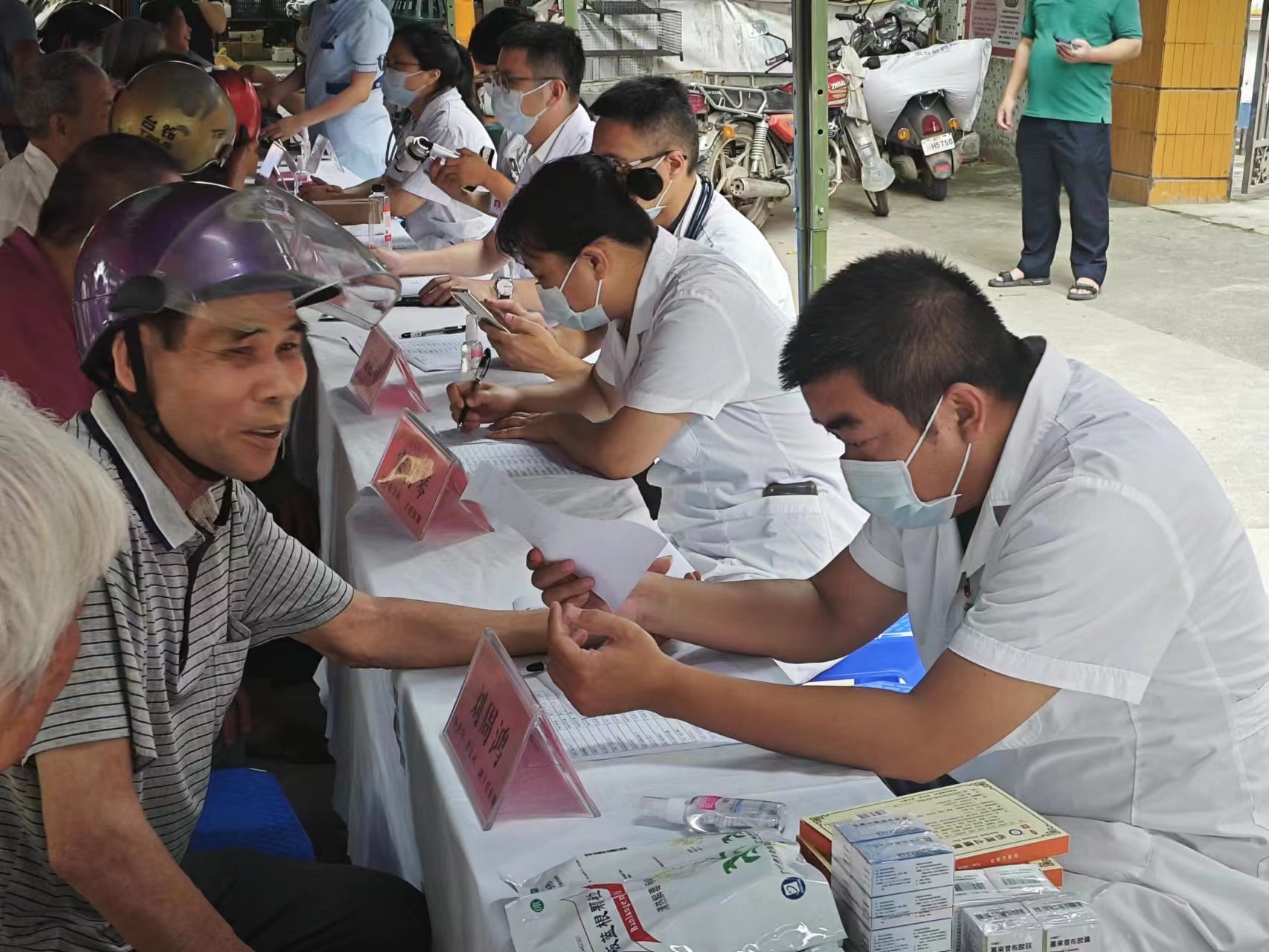 義診內(nèi)容: 多發(fā)病與常見病的診療、急救知識宣教、健康咨詢、現(xiàn)場答疑、中醫(yī)體質(zhì)辨識、針對性地給出診療建議、個體化用藥指導(dǎo)和免費(fèi)送藥,測量血壓、血糖等服務(wù)。