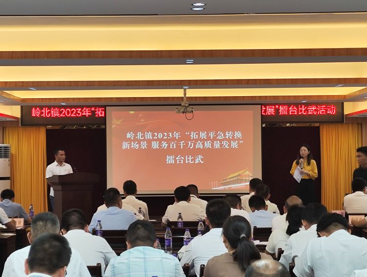 9月6日,嶺北鎮(zhèn)成功舉辦2023年“拓展平急轉(zhuǎn)換新場景 服務(wù)百千萬高質(zhì)量發(fā)展”擂臺(tái)比武活動(dòng)。本次活動(dòng),是鎮(zhèn)委、鎮(zhèn)政府緊緊圍繞縣委、縣政府的關(guān)于推動(dòng)“百縣千鎮(zhèn)萬村高質(zhì)量發(fā)展工程”促進(jìn)城鄉(xiāng)區(qū)域協(xié)調(diào)發(fā)展的工作方案要求,深化“平急轉(zhuǎn)換”工作機(jī)制在“百千萬工程”的實(shí)踐和運(yùn)用,著力以高質(zhì)量黨建推動(dòng)高質(zhì)量發(fā)展的一項(xiàng)重要舉措。活動(dòng)旨在提升全體村“兩委干部”對(duì)“平急轉(zhuǎn)換”工作機(jī)制的認(rèn)識(shí),通過亮成績、擺思路、談經(jīng)驗(yàn)的擂臺(tái)比武形式,在全鎮(zhèn)范圍內(nèi)營造競標(biāo)爭先、比學(xué)趕超的濃厚氛圍,進(jìn)一步提升基層干部運(yùn)用“平急轉(zhuǎn)換”工作機(jī)制服務(wù)百千萬高質(zhì)量發(fā)展工程的意識(shí)和能力。