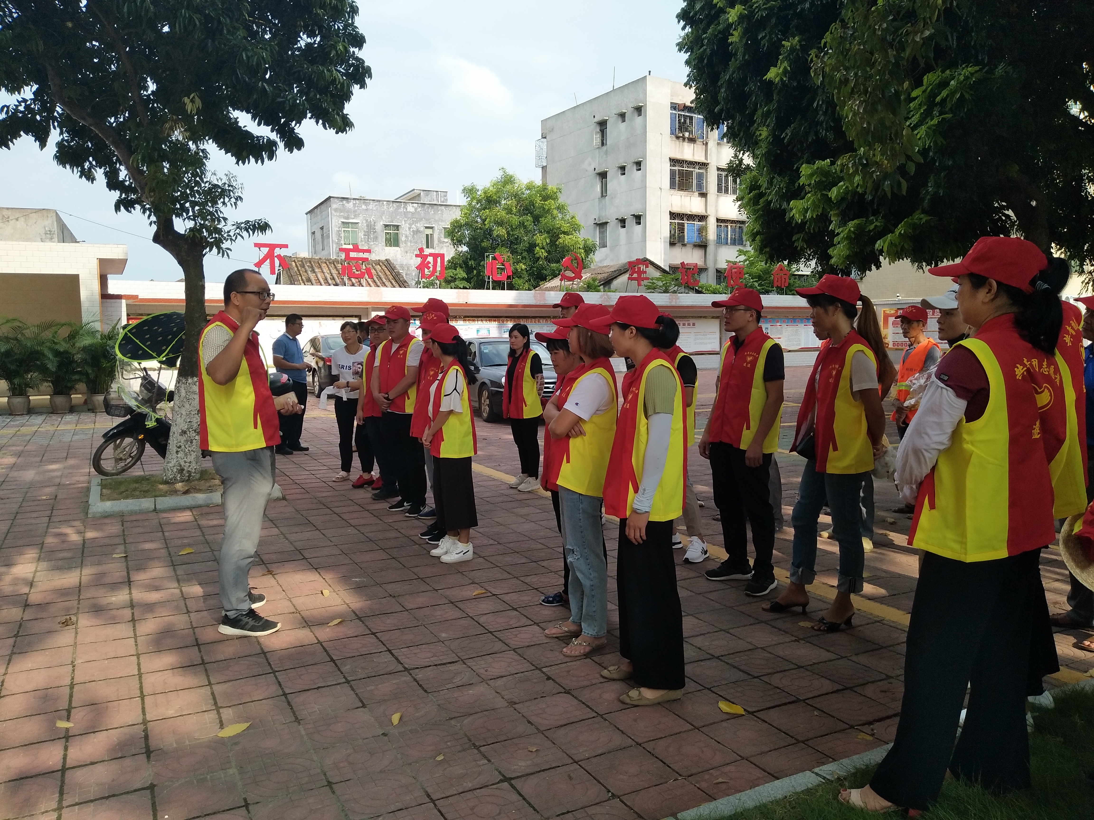 (一聲令下,全體青年志愿者趕赴指定村莊開展志愿服務活動)