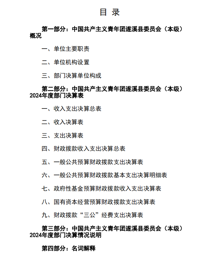 2024年度中國共產(chǎn)主義青年團遂溪縣委員會(本級)部門決算 | | 作者: | 來源:中國共產(chǎn)主義青年團遂溪縣委員會 | 時間:2025-09-16 15:05:25 點擊數(shù):- 2024年度中國共產(chǎn)主義青年團遂溪縣委員會(本級)部門決算.pdf 【打印正文】