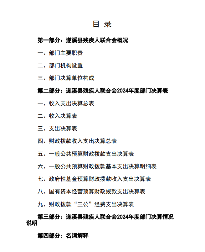 2024年度遂溪縣殘疾人聯(lián)合會(huì)部門(mén)決算 | | 作者: | 來(lái)源:遂溪縣殘疾人聯(lián)合會(huì) | 時(shí)間:2025-09-16 15:53:38 點(diǎn)擊數(shù):- 2024年度遂溪縣殘疾人聯(lián)合會(huì)部門(mén)決算.pdf 【打印正文】