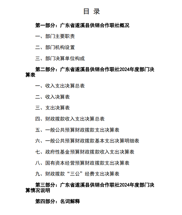 2024年度廣東省遂溪縣供銷合作聯(lián)社部門決算 | | 作者: | 來源:遂溪縣供銷合作聯(lián)社 | 時間:2025-09-17 10:12:16 點擊數(shù):- 2024年度廣東省遂溪縣供銷合作聯(lián)社部門決算.pdf 【打印正文】