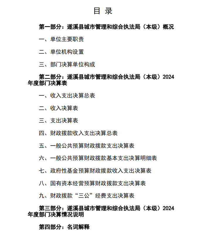 2024年度遂溪縣城市管理和綜合執(zhí)法局(本級(jí))部門決算 | | 作者: | 來源:遂溪縣城市管理和綜合執(zhí)法局 | 時(shí)間:2025-09-17 10:24:19 點(diǎn)擊數(shù):- 2024年度遂溪縣城市管理和綜合執(zhí)法局(本級(jí))部門決算.pdf 【打印正文】