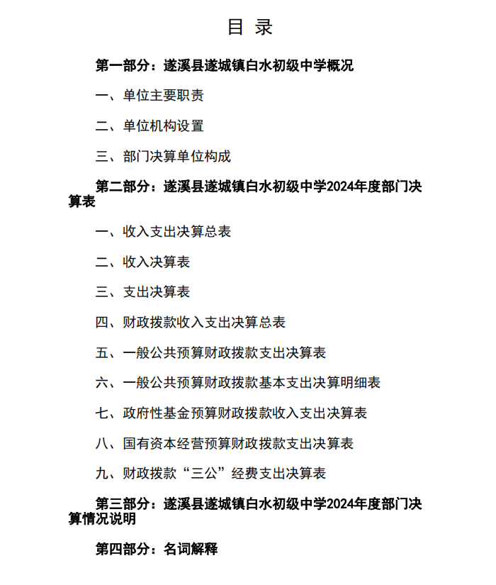 2024年度遂溪縣遂城鎮(zhèn)白水初級中學(xué)部門決算 | | 作者: | 來源:遂溪縣教育局 | 時間:2025-09-18 09:47:46 點擊數(shù):- 2024年度遂溪縣遂城鎮(zhèn)白水初級中學(xué)部門決.pdf 【打印正文】