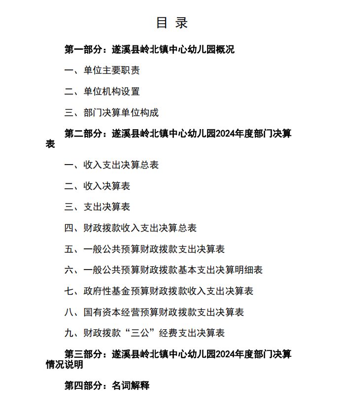 2024年度遂溪縣嶺北鎮(zhèn)中心幼兒園部門決算 | | 作者: | 來源:遂溪縣教育局 | 時(shí)間:2025-09-18 10:21:10 點(diǎn)擊數(shù):- 2024年度遂溪縣嶺北鎮(zhèn)中心幼兒園部門決算.pdf 【打印正文】