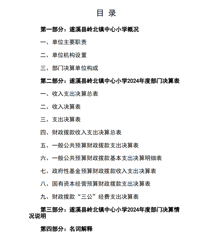 2024年度遂溪縣嶺北鎮(zhèn)中心小學(xué)部門決算 | | 作者: | 來源:遂溪縣教育局 | 時間:2025-09-18 10:23:12 點擊數(shù):- 2024年度遂溪縣嶺北鎮(zhèn)中心小學(xué)部門決算.pdf 【打印正文】