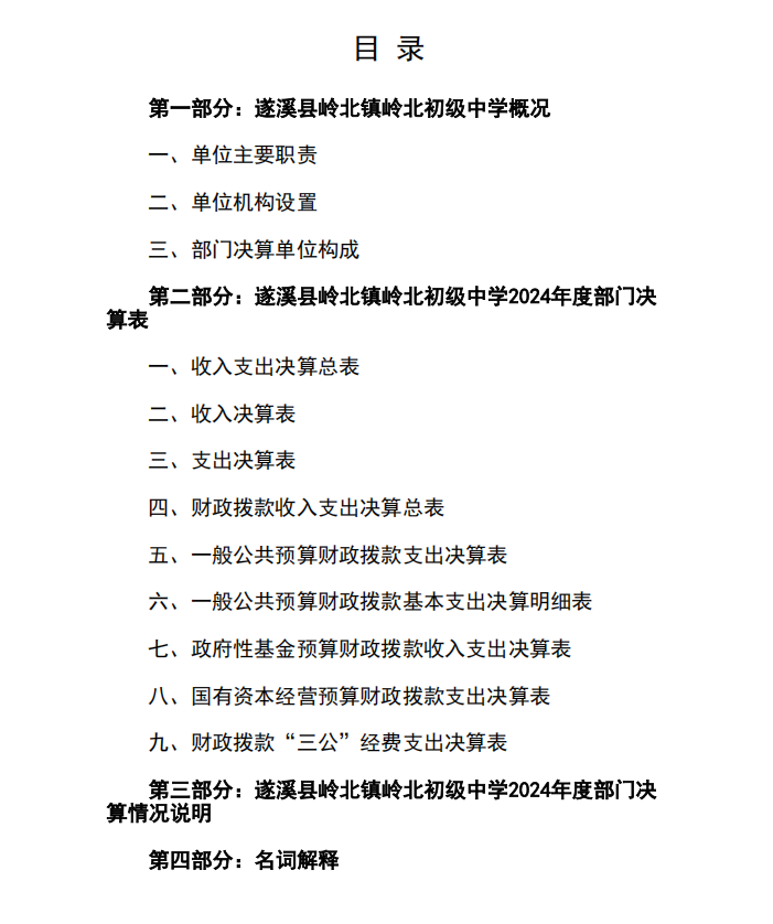 2024年度遂溪縣嶺北鎮(zhèn)嶺北初級中學(xué)部門決算 | | 作者: | 來源:遂溪縣教育局 | 時間:2025-09-18 10:30:01 點擊數(shù):- 2024年度遂溪縣嶺北鎮(zhèn)嶺北初級中學(xué)部門決算.pdf 【打印正文】