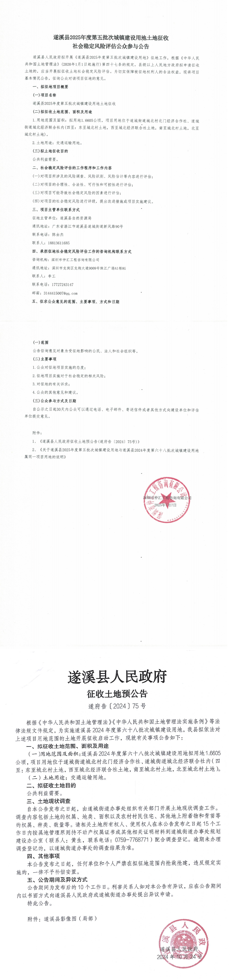 遂溪縣2025年度第五批次城鎮(zhèn)建設用地土地征收社會穩(wěn)定風險評估公眾參與公告 | | 作者: | 來源:遂溪縣自然資源局 | 時間:2025-07-07 14:50:49 點擊數(shù):- 【打印正文】