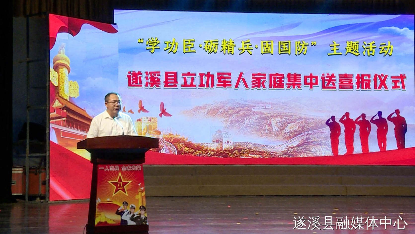遂溪縣委常委、副縣長龐宇代表縣委、縣政府向立功受獎軍人家庭表示熱烈的祝賀,對廣大軍人家屬一直以來對國防和軍隊建設(shè)事業(yè)的關(guān)心支持表示衷心的感謝。并向在座新兵們強調(diào)了國防建設(shè)的重要性,勉勵新兵們要珍惜軍旅生涯,刻苦訓(xùn)練,勇于擔當,不負韶華,為家鄉(xiāng)爭光,為祖國添彩。
