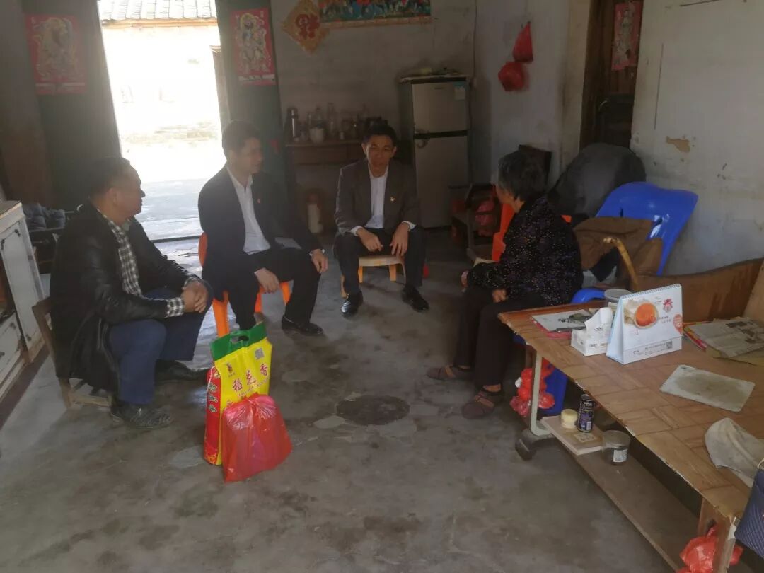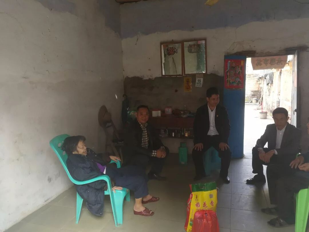 韓永紅一行走進新建村委會雙腿殘疾困難老黨員羅月蘭和失明五保戶鐘愛民家中,與她們親切交談,關(guān)心了解她們的生活情況和身體狀況,并送上大米、花生油、慰問金和節(jié)日的祝福。